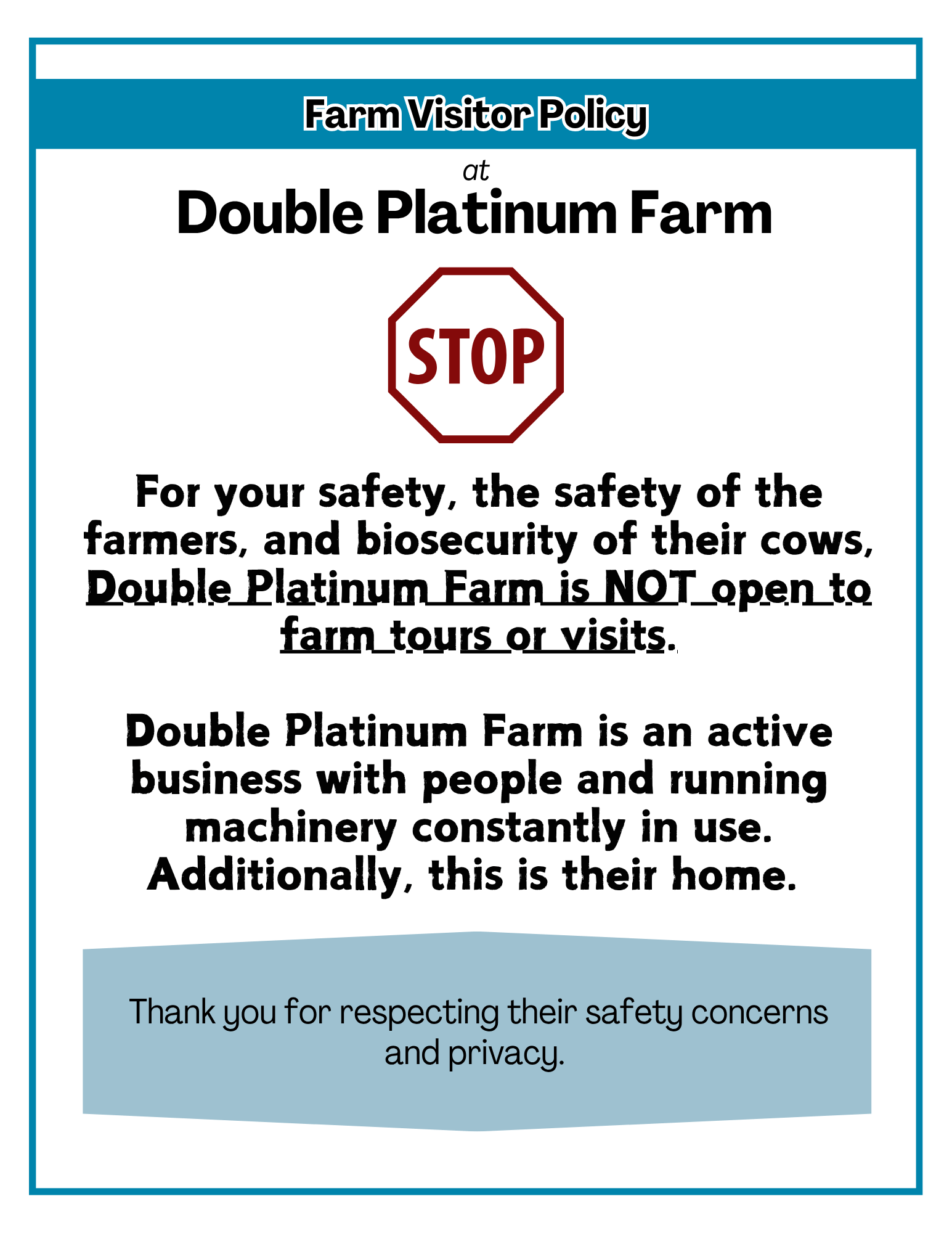 Double Platinum Farm – Visitor Policy